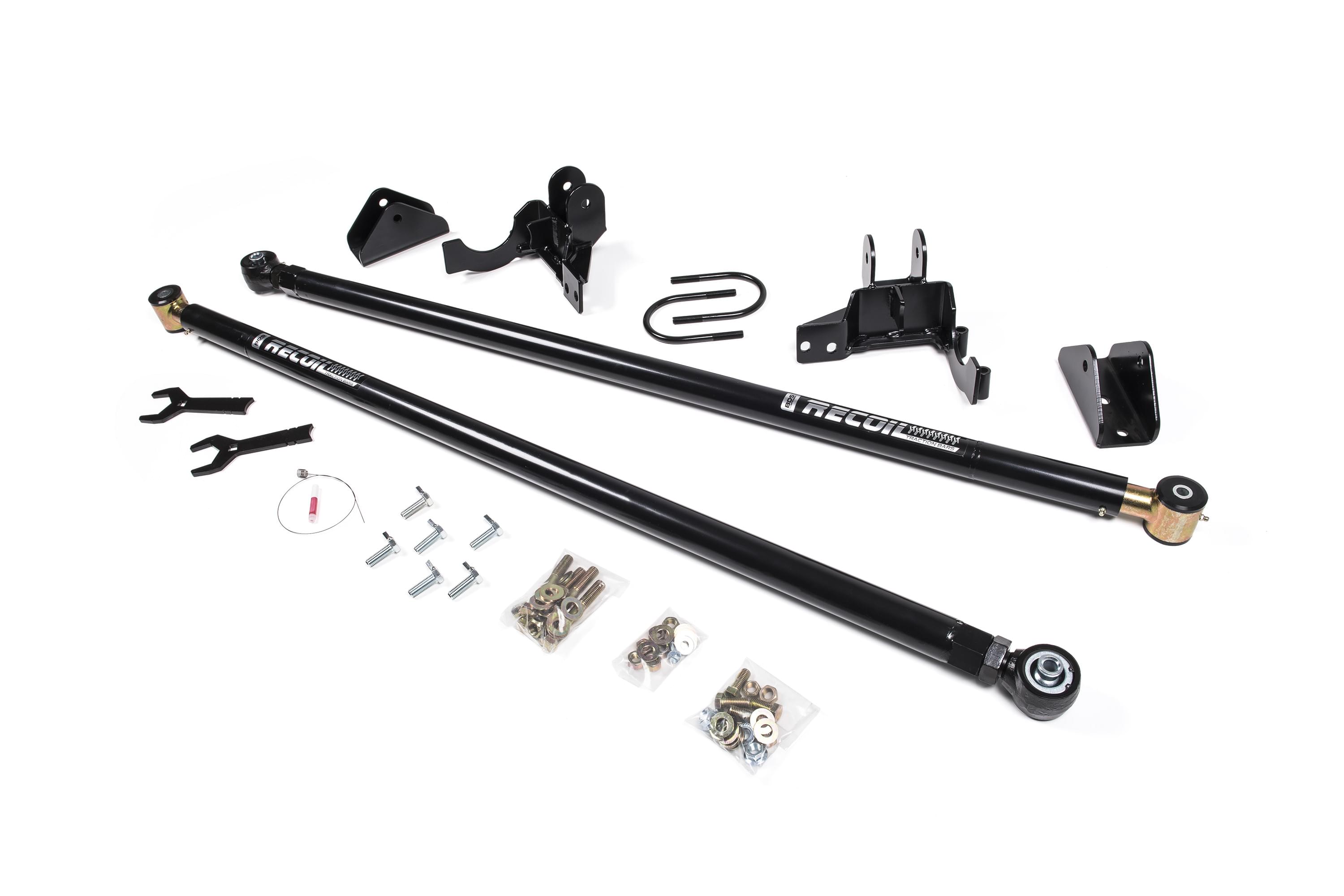 BDS Suspension introduces a revolutionary spring loaded traction bar system engineered to improve traction and limit axle wrap without negatively affecting suspension travel or ride quality. RECOIL Fits 0-6in of rear lift Will NOT work on standard cab models Will fit Single and Dually rear wheel models