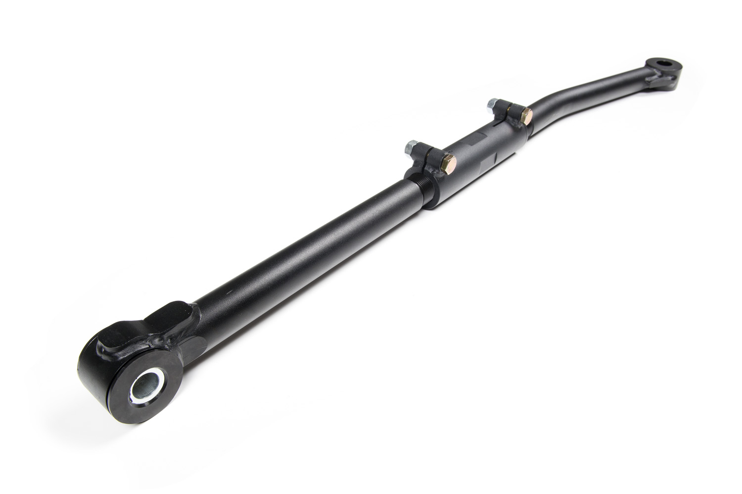 This heavy-duty adjustable track bar mimics the shape of the factory track bar. The bar mounts in the factory locations or works with any aftermarket relocation bracket that was designed for use with the stock track bar.